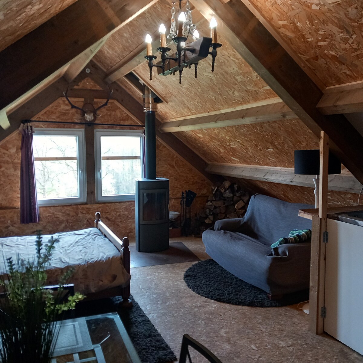 Situado en el piso de un granero, este alojamiento con un diseño simple y rústico es adecuado para 2 a 3 personas, pero es posible acomodar un número mayor con condiciones (posibilidad de instalar tiendas de campaña cerca del granero). La Grange de La Source es ideal para senderistas, ciclistas, jinetes, pero también para parejas o amigos que simplemente desean una puesta en verde, lejos de lo superfluo, las pantallas, el ajetreo y el estrés. ¡Desconexión total asegurada!