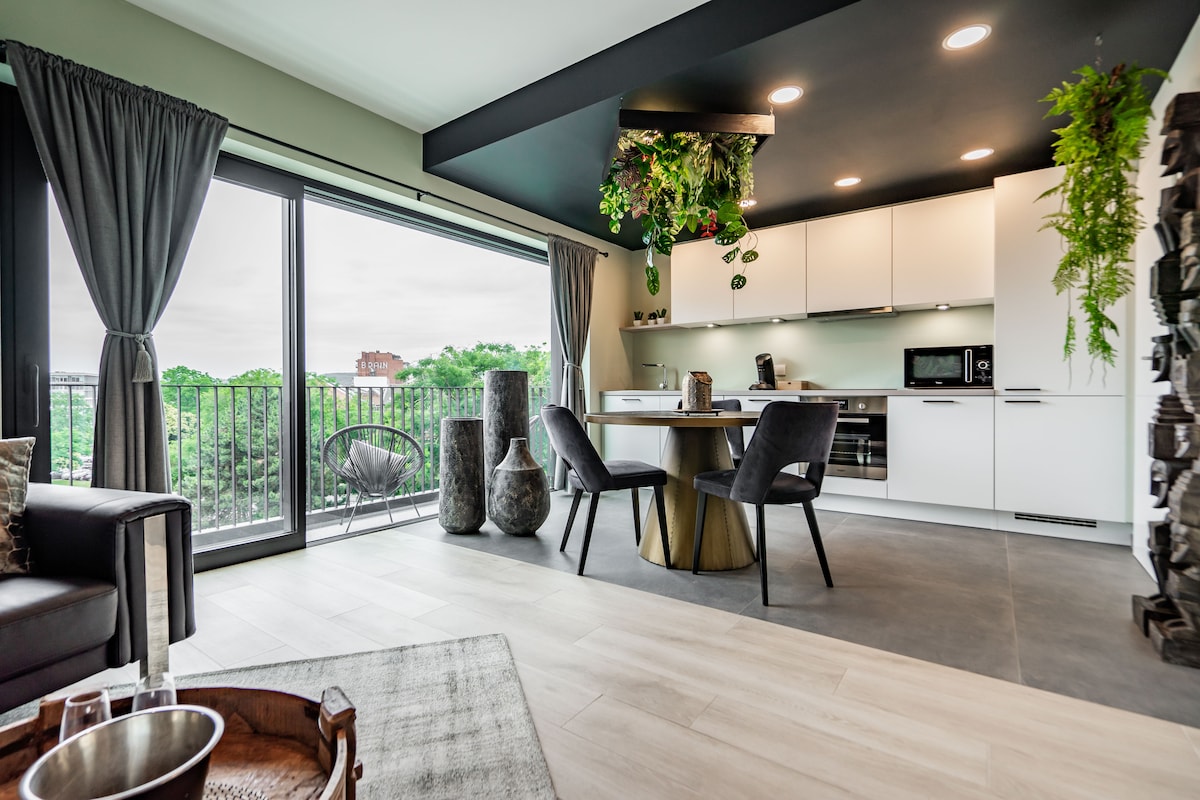 Relájese en este alojamiento tranquilo y elegante. Este estudio de 60 m2 situado en el 4.º piso de un nuevo edificio está equipado con una cocina equipada, ducha, sauna privada, balcón y wifi de fibra óptica A 10 minutos a pie del centro de Lieja, a 1 minuto del Parque de la Boverie y su Museo, a dos pasos del centro comercial «La Médiacité», muy cerca de la estación de tren de Guillemins y de todos los servicios. Dependiendo de la disponibilidad, es posible realizar el check-out después de la hora establecida con un suplemento de 15 €/hora