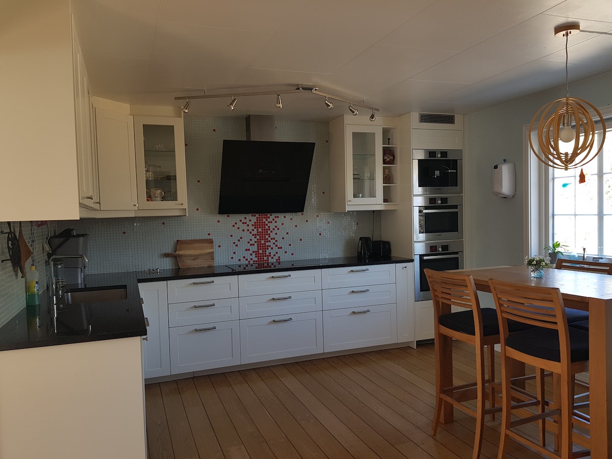 Anexo en la parcela del propietario. Jardín grande y apto para niños disponible disponible. En este lugar, tu familia puede permanecer cerca de todo, la ubicación es céntrica. A poca distancia a pie del centro de Lillesand y Kristiansand Dyrepark está a poca distancia en auto.