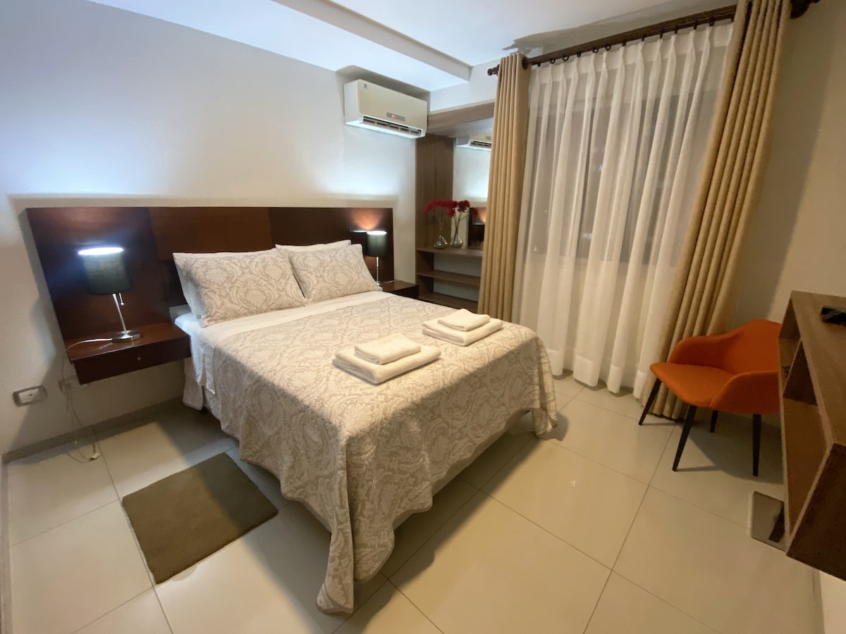 Hermoso departamento cómodo, moderno y muy acogedor, completamente amoblado y en excelente ubicación, zona céntrica y residencial. A sólo unas cuadras del centro histórico, cerca de restaurantes, clínicas, farmacias, bancos, supermercados, plazas y parques. Cuenta con una hermosa vista de la ciudad y todo lo necesario para una agradable estadía ya sea por negocios o placer.