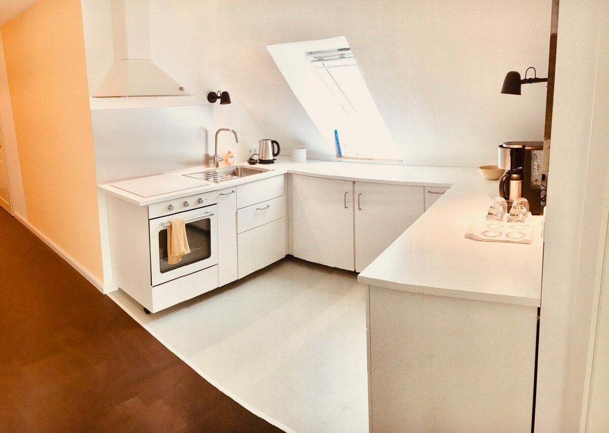 Nuestro bonito apartamento de 1 habitación en el polígono industrial se encuentra en el primer piso y se puede llegar a través de una escalera exterior. Está construido de forma especial y, por lo tanto, es bastante único y muy acogedor. Te espera una zona de estar, dormitorio y cocina abiertos. Además, hay un vestidor y un trastero. Además, un balcón soleado. Los fines de semana y las escapadas cortas son bienvenidos.