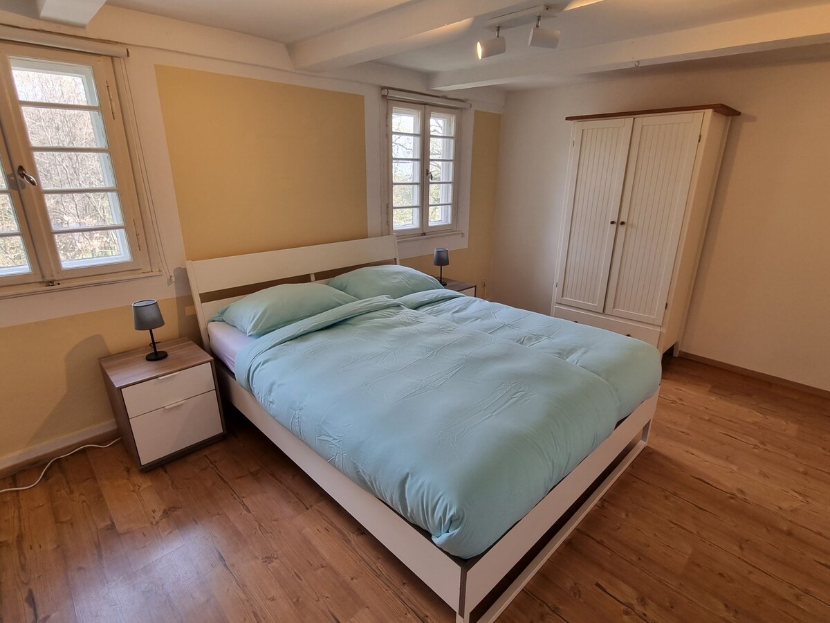 Acogedor apartamento amueblado con mucho amor en una antigua casa de entramado de madera. Entrada independiente, terraza soleada... aquí solo "molestan" los pájaros. La propiedad se encuentra al final de un callejón sin salida en medio de bosques y prados. Ideal para excursionistas y ciclistas, se puede empezar justo delante de la puerta. En el gran jardín detrás de la casa se puede estar tumbado al sol, sentarse cómodamente bajo el nogal, utilizar la sauna (10,- para gastos adicionales) o terminar el día alrededor de la hoguera!