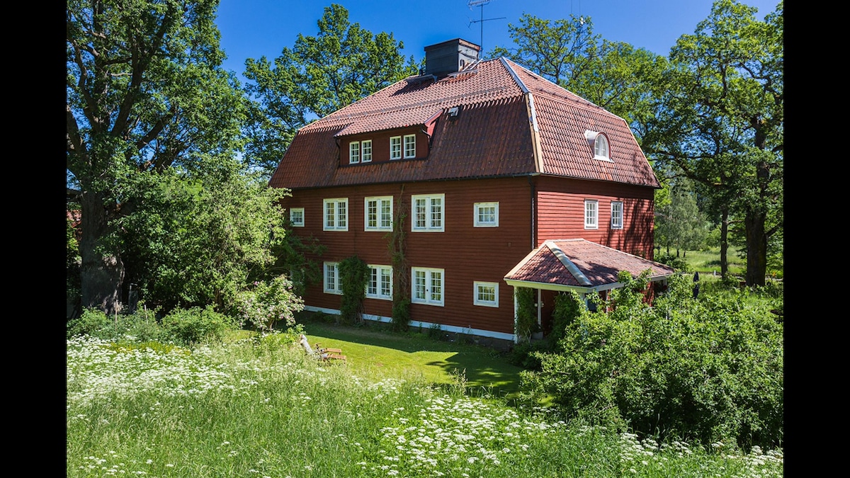 ¡Bienvenido a Ginkelösa Nygården! El edificio del ala (a la izquierda en la imagen del helicóptero) le ofrece, como huésped, un alojamiento privado de muy alto nivel en un entorno rural a solo 10 minutos del centro de Linköping. La casa está totalmente equipada con cocina y 1,5 baños + sauna y bañera de hidromasaje al aire libre. El cargador para coches eléctricos está disponible por un cargo. Este alojamiento es ideal para familias numerosas, grupos de chicas o chicos, o 2-3 parejas que quieren algo fuera de lo común.