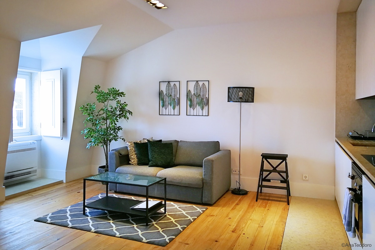 Maravilhosamente localizado no coração de Lisboa, em plena Rua Garrett, no cosmopolita bairro do Chiado, o apartamento fica situado no 5º e último piso, tendo uma varanda com uma magnífica vista para o Castelo de São Jorge e para o rio Tejo. Acorde a ouvir os artistas de rua a cantar, tome o pequeno almoço na Brasileira - onde Fernando Pessoa escreveu a mais bela poesia portuguesa -, e aproveite para comprar um livro na Bertrand, a mais antiga livraria do mundo, tudo isto, mesmo junto ao ...
