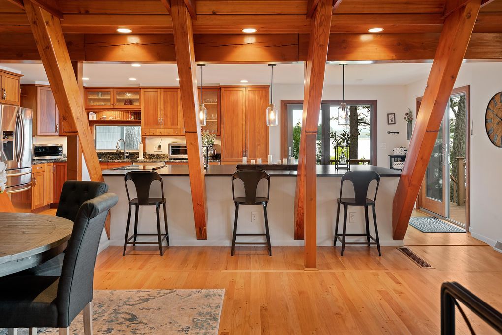Step out of the screened in patio to lakeside relaxation. Dive into crystal waters, snorkel or float with a cool beverage. Kayak or canoe out to Turtle Cove and enjoy the wildlife in this natural waterway teeming with birds to include our resident Blue Heron, ducks, geese, and loons who make this place their home. We have the fortune of bald eagles in several tall pines. Turtles sunning on doting rocks and lily pads in bloom greet us each day. It is a natural water landscape.