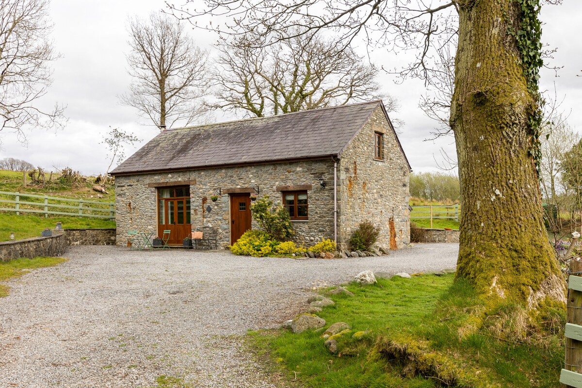 Un histórico granero de carácter totalmente reformado adjunto a nuestra tradicional casa galesa. Tiene un dormitorio en el entresuelo con una cama doble al que se accede a través de una hermosa escalera de caracol. En la planta baja hay una sala de estar con cocina abierta con una estufa de leña y una hermosa lámpara de araña. La cocina está bien equipada e incluye horno eléctrico/vitrocerámica, lavavajillas, lavadora, microondas y enfriador de vino. Hay grandes ventanales en la parte delantera y trasera de la propiedad con las vistas más impresionantes.