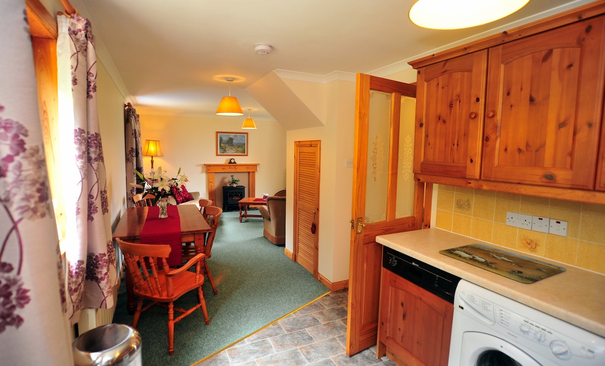 Garve Cottage es una casa cómoda y bien equipada con tres dormitorios; dos con camas dobles y uno con dos camas individuales. Baño completo con bañera y ducha en la planta superior y baño con ducha, inodoro y lavabo en la planta baja. La cocina tiene un lavavajillas incorporado, un microondas y una placa eléctrica y un horno completo. La calefacción por suelo radiante se instaló recientemente junto con el nuevo suelo de baldosas que se extiende a través del cuarto de servicio hasta el baño con ducha de la planta baja. Lavadora y secadora en el lavadero.