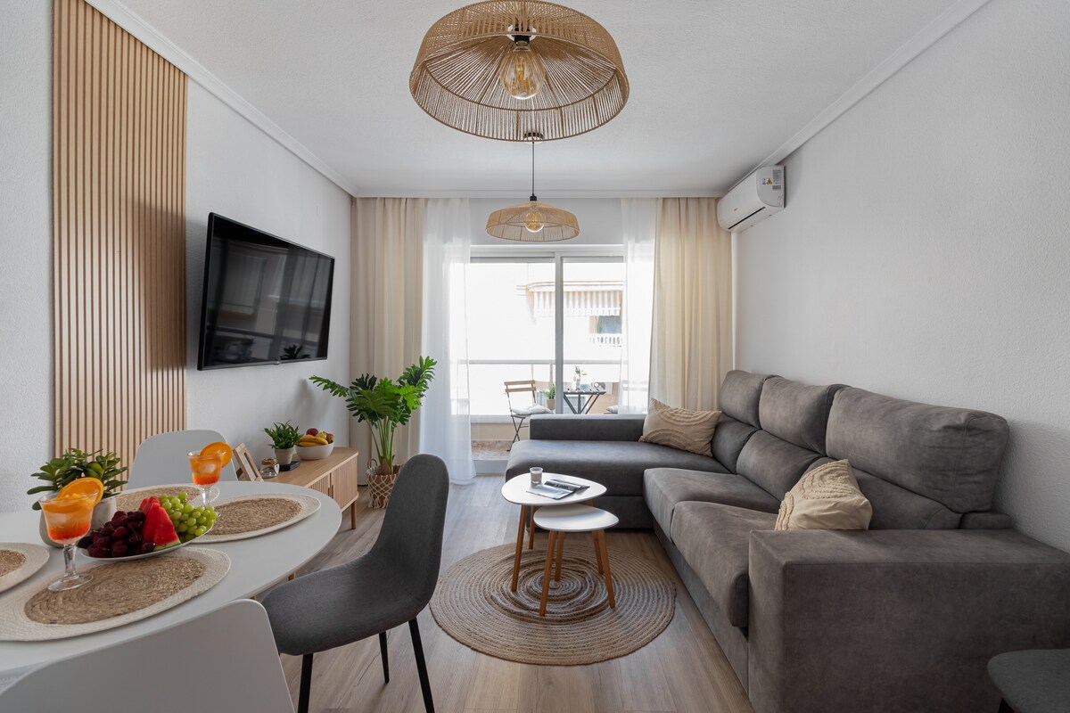 Oasis for your relax a stone's throw from the sea. Just 150 meters from Los Locos Beach. Beautiful apartment with 2 bedrooms and terrace overlooking the pool. Styled in Scandinavian and boho decor, it features Wi-Fi, TV, air conditioning, and a snack corner with coffee and treats. Ideal for families, couples, and professionals.