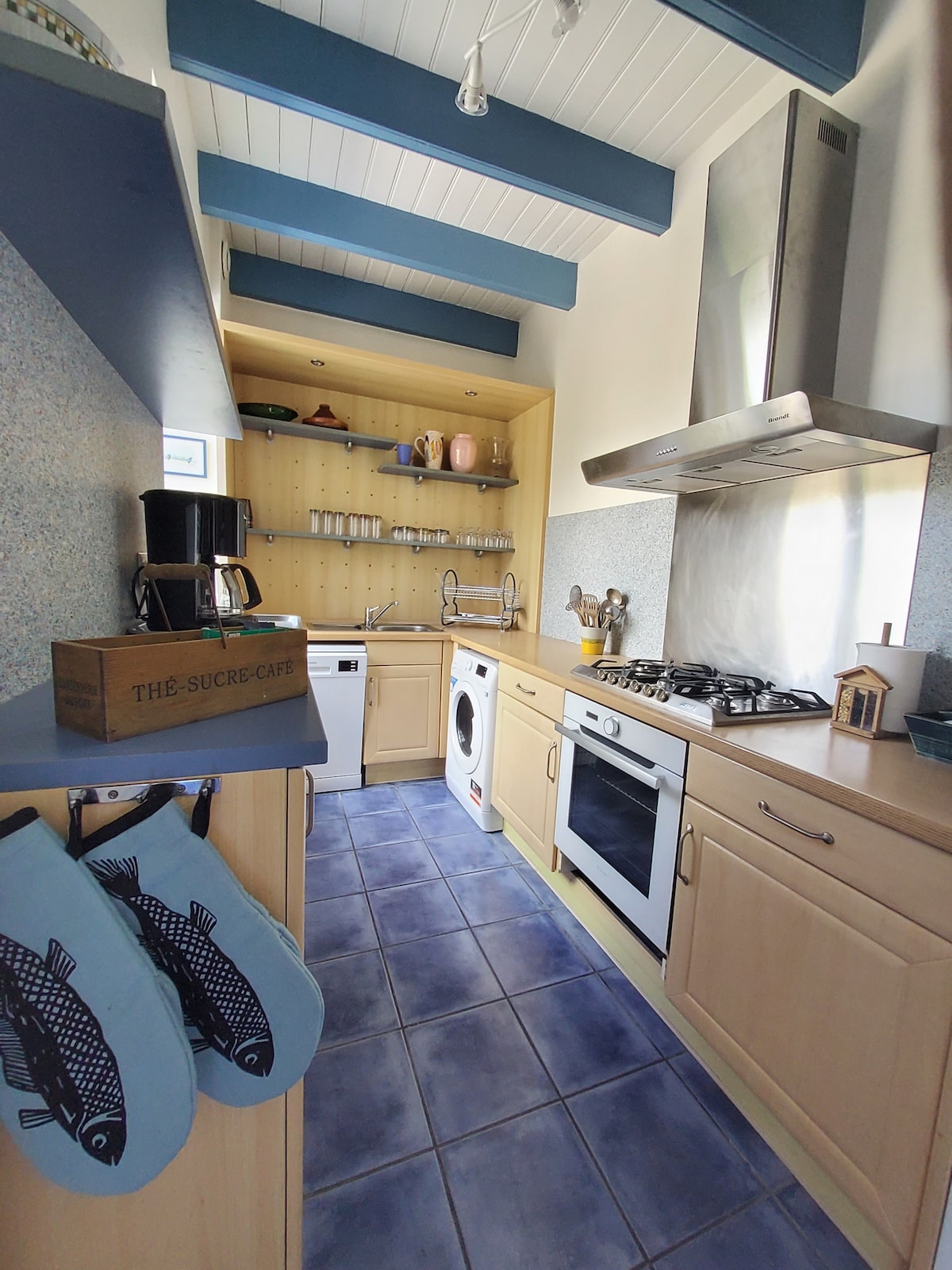 Avel Mad es una pequeña casa bretona situada en Loctudy, en el país de Bigouden, Bretaña del Sur. La magnífica playa de Sables Blancs y el camino costero están al final de la calle. La casa está completamente renovada con materiales de calidad y decorada con cuidado. Orientada al sur, está bañada por la luz. Su jardín cerrado permite disfrutar del exterior con total intimidad. Numerosas playas y senderos por descubrir en los alrededores. ¡Pura felicidad para sentirse completamente de vacaciones!