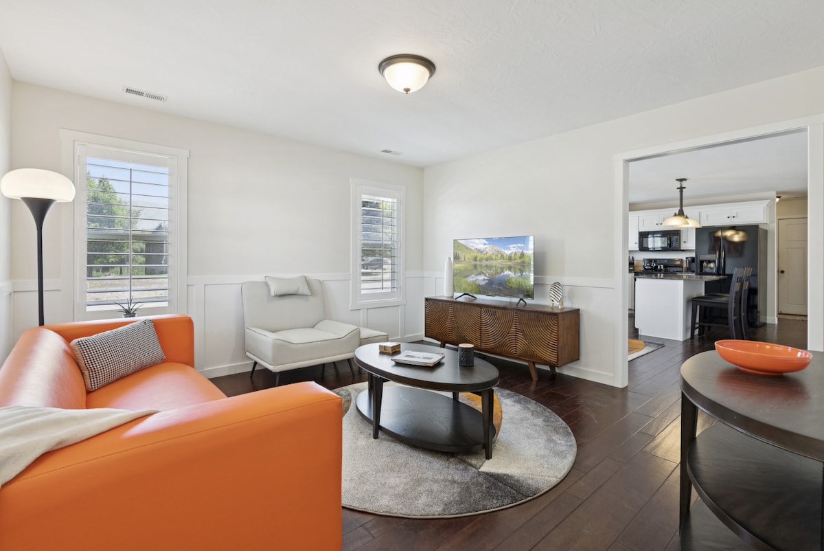 Disfruta de una estancia cómoda y sin estrés en nuestra suite en el sótano de 1 dormitorio en North Logan. A minutos en coche del campus de Utah State y del cañón Logan. Esta suite de invitados en el sótano es abierta, espaciosa y luminosa, con su propia entrada privada. Disfruta de todo lo que necesitas para estar cómodo y SIN complicaciones. Wifi gratuito. Cocina totalmente abastecida y funcional que incluye lavavajillas, horno, microondas y cafetera. Tu propia lavadora y secadora. TV en streaming. Cama tamaño queen ajustable + futón plegable. Se pueden proporcionar cunas adicionales.