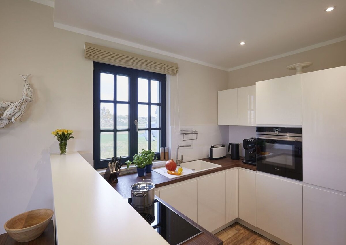 Stilvolles Apartment am Meer mit Sauna & Fitness 🌊1. Meereslage 🛋️ maßgefertigte Tischlermöbeln 🔥 Fußbodenheizung & Vinylboden 🛌 Boxspringbetten (180x200) 📺 2 Smart-TVs im Wohn- & Schlafraum 🚿 Ebenerdige Raindance-Dusche & Doppelwaschtisch 💇♀️ Föhn & Glätteisen 🍽️ Voll ausgestattete Küche: Espresso- & Filtermaschine, Milchaufschäumer, Mikrowelle 🧳 Wäschepaket,Cafe, Tee, Pflegeprodukte inkl. 🚗 freier Parkplatz 🌙 Hochwertiger Sonnen- & Verdunklungsschutz 📶 WLAN inklusive