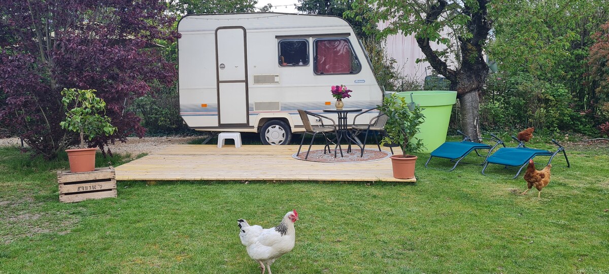 Pase unas vacaciones con los recuerdos de la infancia en una caravana a la sombra de un cerezo con un espíritu acogedor y bohemio en el campo en casa de un habitante en un espacio cerrado y arbolado en las inmediaciones de los lugares turísticos como el castillo de Chambord/Cheverny/Blois/casa de la magia y el zoológico de Beauval. Tenemos una perra llamada Uska que vendrá a saludarle y una gata que responde al nombre de Isis