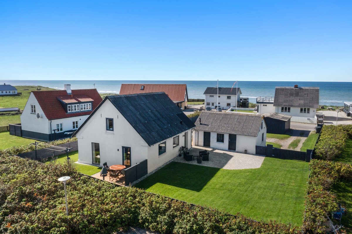La casa de verano, que se encuentra en la primera línea del Mar del Norte, al norte de Lønstrup, está muy bien equipada y tiene vistas al mar en 3 de los lados de la casa. Hay aproximadamente 40 metros cuadrados de terraza alrededor de la casa, donde hay muchas oportunidades para encontrar refugio. Hay aprox. 900 metros hasta la ciudad de Lønstrup por un sendero a lo largo del agua y fantásticas playas a pocos minutos a pie. Lønstrup se conoce como lille-skagen debido a sus numerosas galerías y ambiente. Hay buenas tiendas y cafeterías.