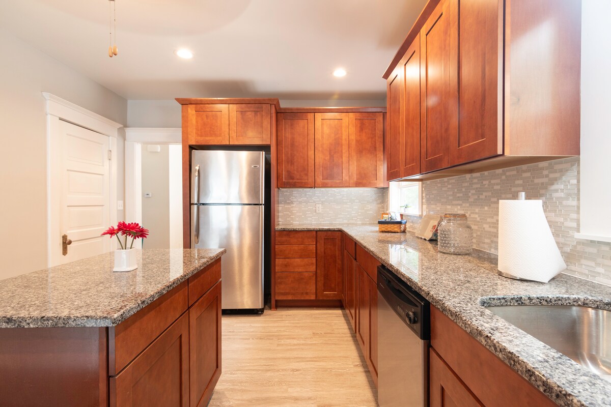 Ven a alojarte en nuestra casa de carruajes recientemente construida y completamente moderna en Prospect, nombrado «El barrio más genial de Estados Unidos» por la revista Dwell. El espacio tiene una cocina completa y es una casa de carruajes de un dormitorio y un baño con capacidad para cuatro personas. Prospect es un nuevo desarrollo urbano con calles arboladas, múltiples parques, restaurantes y tiendas minoristas. Este espacio cómodo, tranquilo y despejado fue construido en 2016 y se encuentra encima de nuestro garaje sin paredes compartidas.