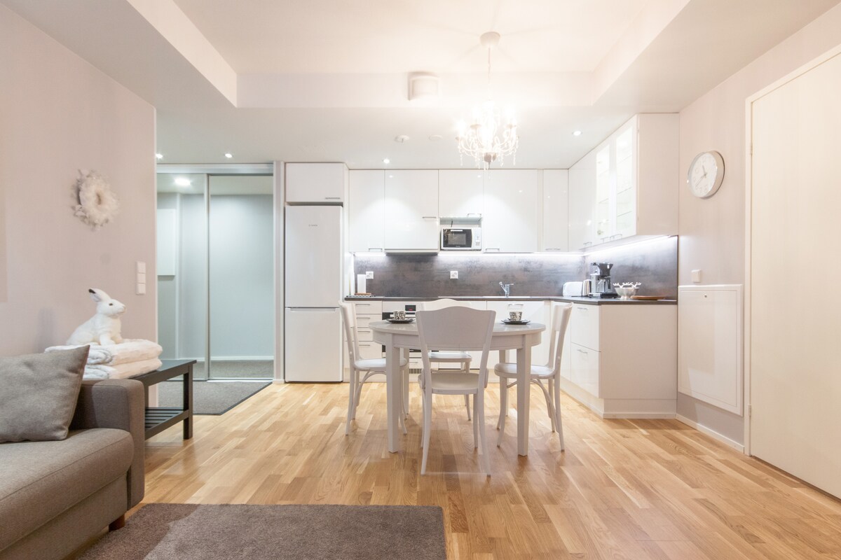 Apartamento moderno, escandinavo y de alta calidad en la ubicación más céntrica de Rovaniemi. Esta ubicación se completó a fines de diciembre de 2017, por lo que todo sigue siendo nuevo :). Hay una gran sala de estar, una cocina abierta totalmente equipada, un dormitorio, un balcón y, por supuesto, una sauna tradicional finlandesa. El piso tiene 48,5 metros cuadrados. Capacidad para 4 personas. Se proporcionan ropa de cama, sábanas y toallas. Lavadora y secador de pelo. Wifi gratuito. Parking privado gratuito bajo petición.