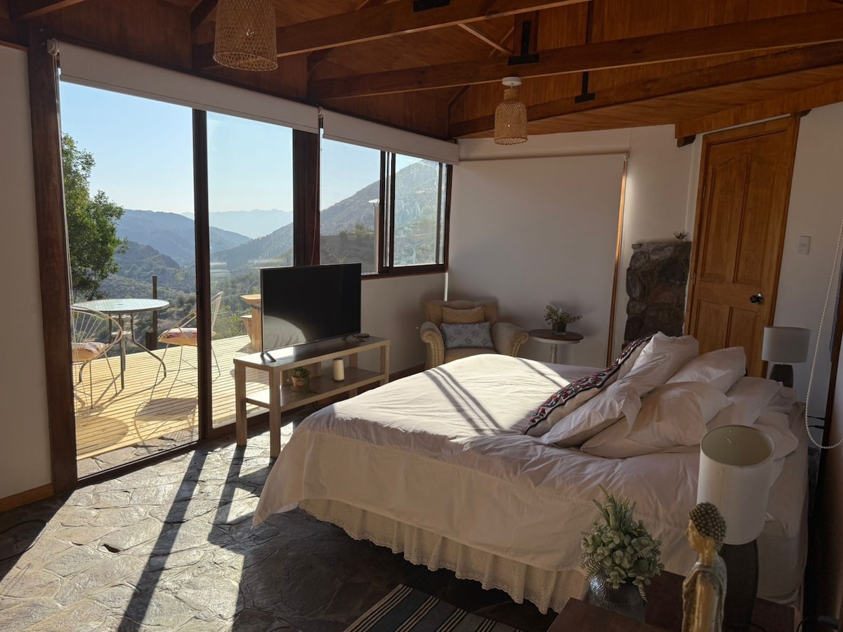 Un Refugio único privado, con la mejor vista a la Cordillera de Los Andes. Es un lugar exclusivo, sin casas cercanas, no es un camping. Estás cerca del Casino Enjoy (20 minutos), Centro de Sky Portillo (60 minutos) y Santiago ( 1 hora). El lugar cuenta con Hot Tub y piscina para nadar por separado , gran quincho con una maravillosa vista. Primer piso con salida directo a la Tinaja, para personas con movilidad reducida , conecta con el silencio y la tierra, Sustentable... Full equipada.