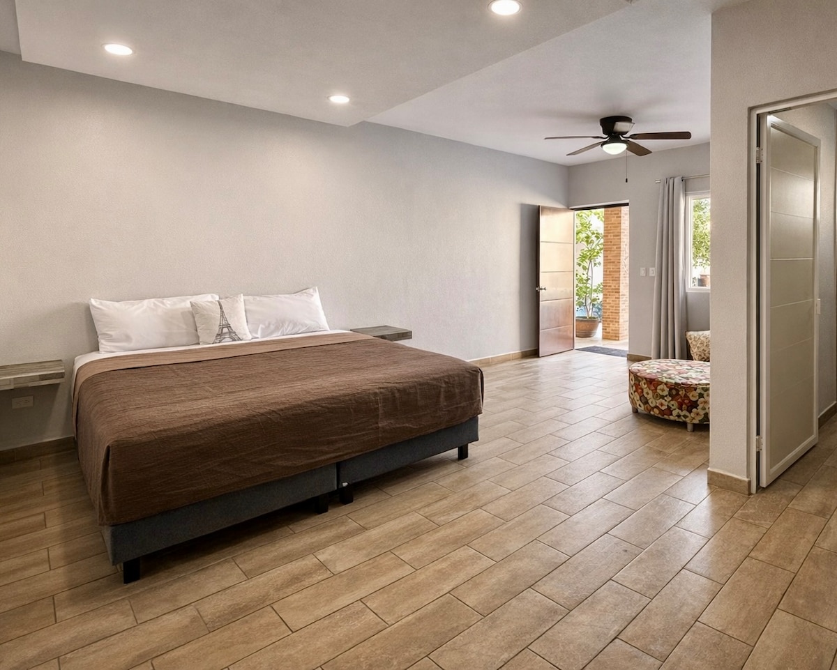 ¡Bienvenido al corazón de San José del Cabo! Nuestra habitación king size en el centro de la ciudad te ofrece una experiencia única, combinando comodidad y conveniencia en un entorno inigualable. La habitación es un rincón de distinción y comodidad, con una cama king size que te garantiza noches de descanso reparador. La ropa de cama de calidad y las almohadas están seleccionadas para tu máximo confort. Desde tu ventana, podrás disfrutar de las vistas pintorescas de San José del Cabo.