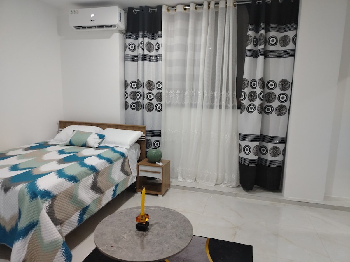 ¿Buscas un lugar cómodo, moderno y lleno de comodidades? ¡Esta suite es para ti! Cama King Size Descansa como nunca en una cama king, súper cómoda y con ropa de cama de alta calidad. Cocina completa 🚪 Entrada con cerradura electrónica Seguridad y facilidad de acceso las 24 horas. Closets amplios Ubicación privilegiada - A pocos pasos de supermercados, plazas y el famoso Country Club. - Área social de la urbanización. ¡Reserva ya y vive la mejor estadía en Ciudad Celeste!