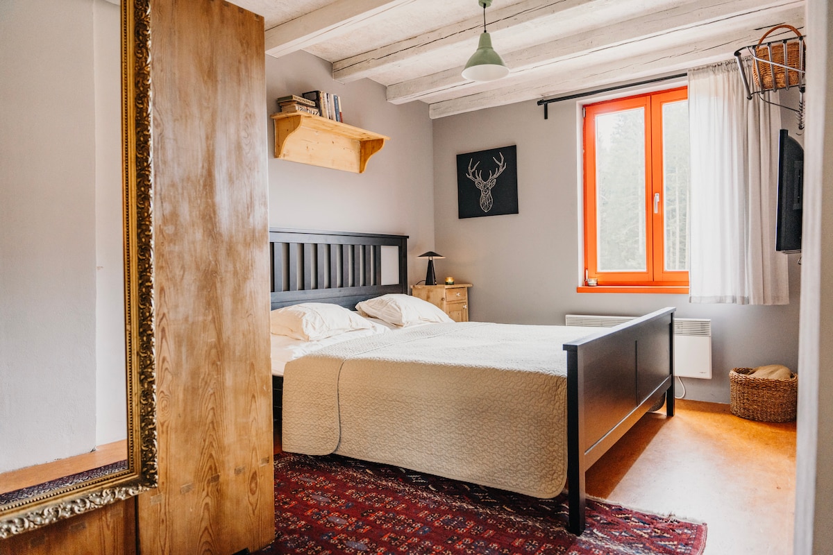 Nuestra casa de madera tradicional está situada en el valle de las montañas Jeseniky con las pintorescas vistas a sus picos nevados. En el vecindario hay pistas de esquí, senderos de fondo y otros centros deportivos de invierno/verano. En verano, primavera y otoño, los huéspedes pueden combinar excursiones de senderismo, ciclismo y natación en agua pura de canteras de granito inundadas. Encuentra tu alojamiento ideal para tus vacaciones familiares y trae a tus mascotas para que se unan a ti :)