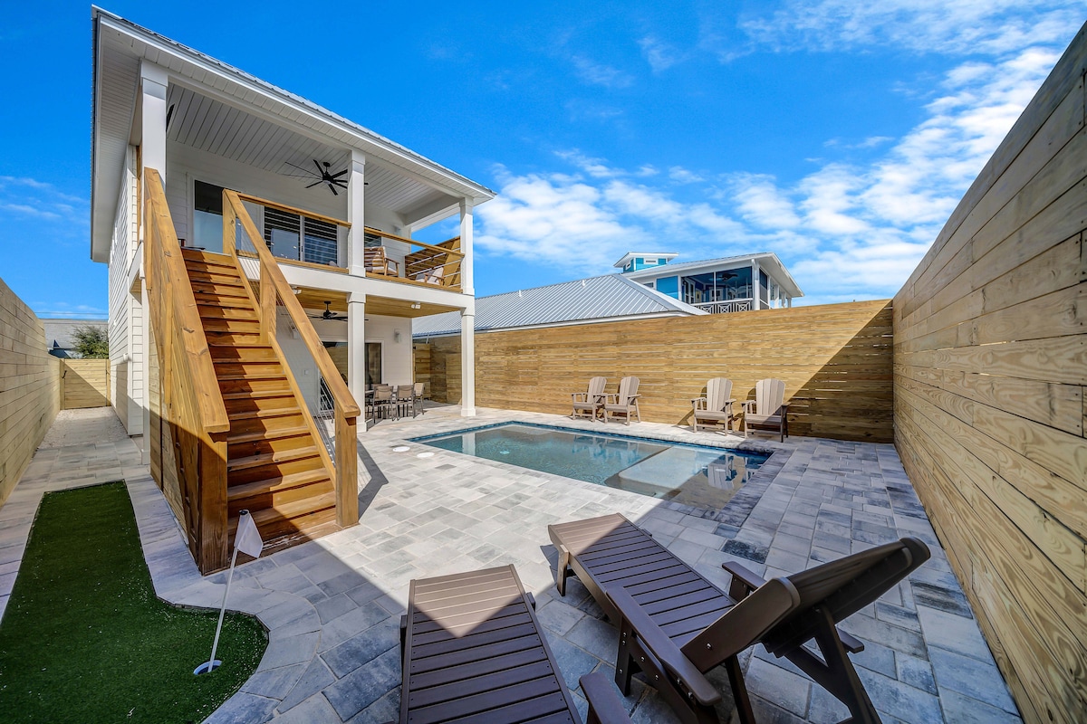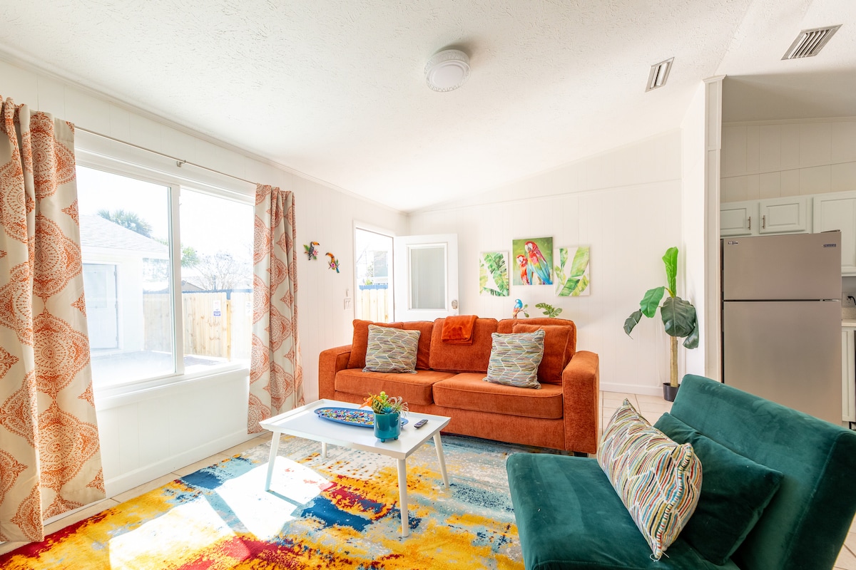 Message us for special winter discount! Enjoy a relaxing experience at our charming, perfectly located 2 bed, 2 bath, beach bungalow steps away from the most beautiful beaches in Florida Located only 1 block from the white sandy beaches of PCB. If you get sick of the beach, you are a short distance from great bars, restaurants, and the beautiful St. Andrews State Park Schooners, Patches, Newby's & TOOTSIES are just around the corner making for a great walk home after dinner and drinks.