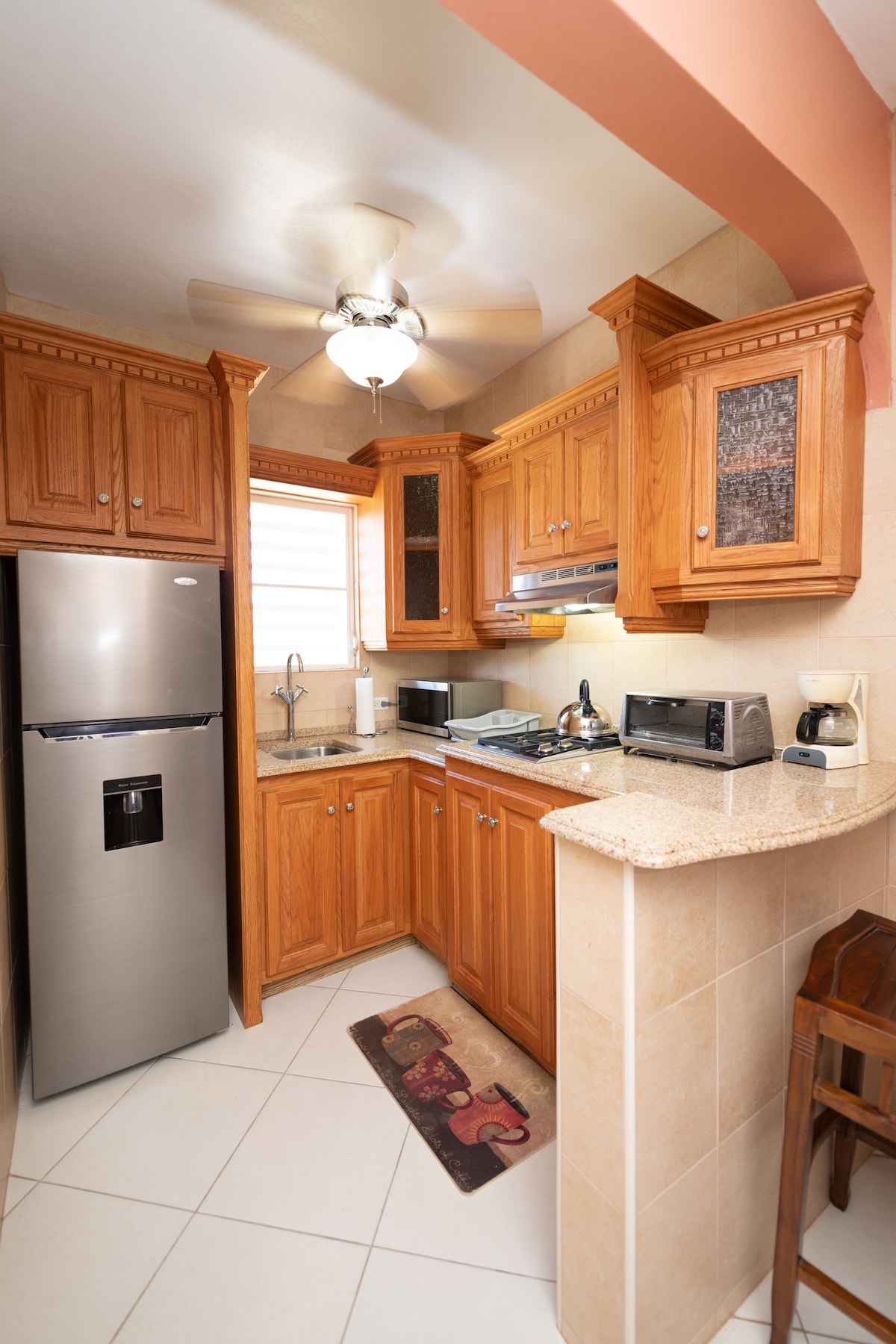 CARTeas is a spacious two-bedroom boutique apartment located in the quiet village of George Hill, Anguilla. Situated on the upper level with a private entrance and keyless entry, the apartment offers a peaceful retreat with modern comforts. Enjoy a king-bed primary suite with soaking tub and walk-in shower, a queen guest suite with walk-in shower, full kitchen, living area, desk nook, TVs, and in-unit washer and dryer. A cozy Caribbean stay designed to feel like home.