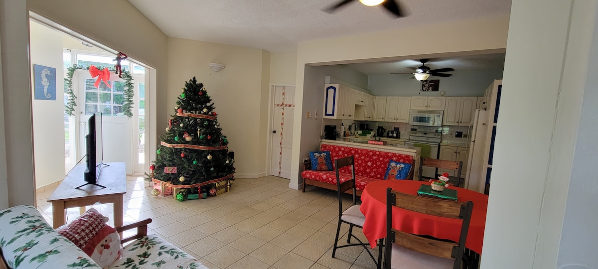 Mi alojamiento está situado en el extremo oeste de Tobago, cerca del aeropuerto y las playas locales, a unos 5 minutos en auto, a 15 minutos a pie . El apartamento está amueblado y consta de 2 dormitorios dobles con aire acondicionado con capacidad para un máximo de 4 personas, baño y sala de estar de planta abierta. La cocina está totalmente equipada para autoservicio con wifi y TV por cable. Despierta con el sonido de los gallos cantando y los pájaros cantando. Mi casa es ideal para parejas, aventureros solitarios, viajeros de negocios y familias (con hijos).