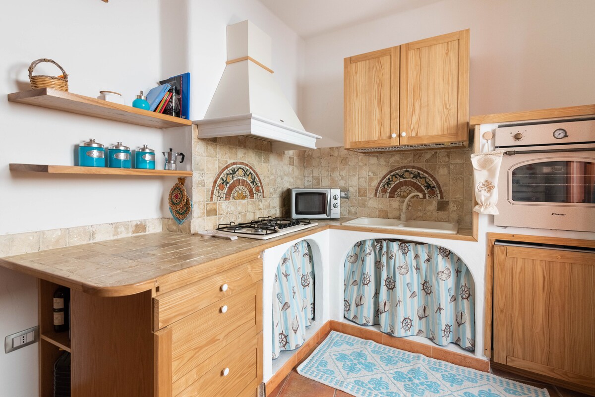 Precioso apartamento de tres habitaciones, espacioso y recién reformado, de 80 metros cuadrados, con sala de estar de planta abierta conectada directamente al patio-jardín con una gran sombrilla y muebles de exterior, acompañados de limoneros, naranjos, pomelos, ciruelos, etc., donde se puede disfrutar a la sombra de estos árboles de fantásticas cenas refrescadas por la brisa del mar. 6 plazas + cuna, a 150 metros de las espléndidas playas de Lu Bagnu, ¡galardonadas con la «Bandera azul 2023»! ¡Situado en la playa del espléndido pueblo medieval de Castelsardo!