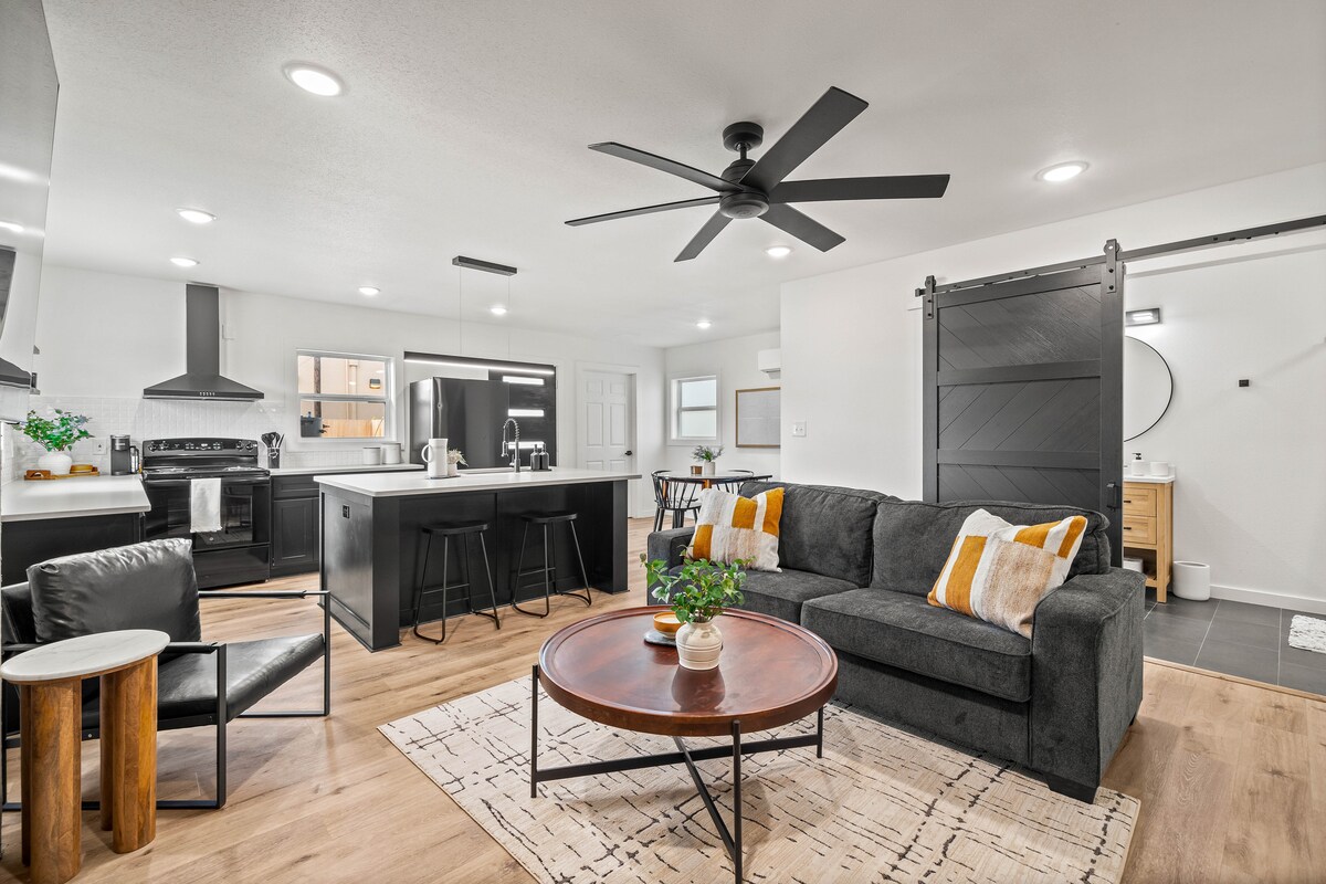 Disfruta del lujo en The Matador, un alojamiento de alta gama en el centro de las mejores partes de Lubbock, Texas. A solo unos minutos de Texas Tech y enfrente de Greek Circle, esta casa de nueva construcción ofrece una combinación de diseño moderno y servicios de alta gama. La suite principal es espaciosa con una cama tamaño king, espacio de trabajo privado y un gran vestidor. El baño incluye una ducha a ras de suelo y una bañera profunda. Disfruta de la sala de estar abierta con un sofá cama, TV de 75 pulgadas y mucho espacio para relajarte.