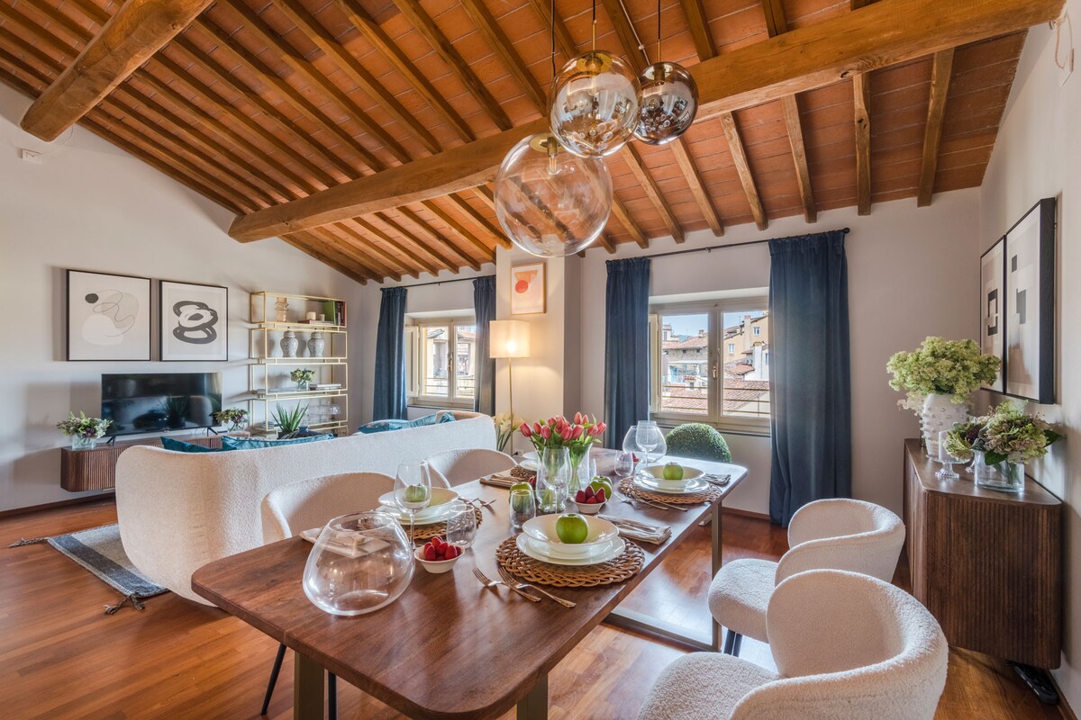 Ubicado dentro de las históricas murallas de Lucca, Italia, se encuentra un extraordinario apartamento en la azotea, encaramado sobre un palacio renacentista meticulosamente renovado que una vez albergó el prestigioso Banco de Italia. Al salir del ascensor, te envuelve un aura de opulencia e historia, que combina a la perfección el encanto de la antigüedad con el lujo contemporáneo.<br><br>Al entrar, te recibe una gran sala de estar adornada con muebles elegantes y una decoración de buen gusto.