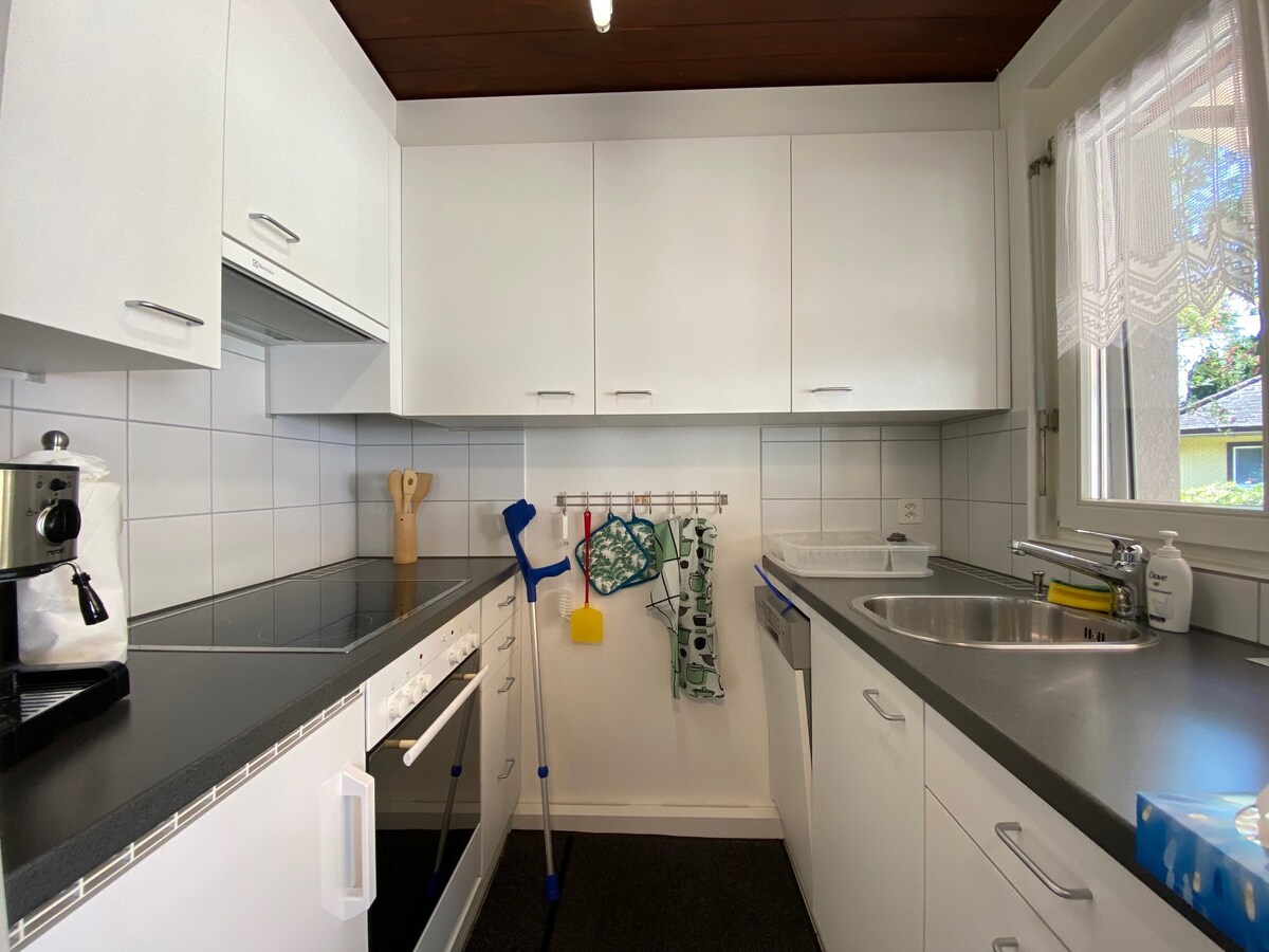 Willkommen in deinem zweiten Zuhause! Diese großzügige, modern eingerichtete Wohnung bietet alles, was du für einen angenehmen Aufenthalt brauchst – egal ob du geschäftlich unterwegs bist oder mit deiner Familie entspannen möchtest. WLAN (High Speed) 2 Schlafzimmer / 1 Bad Voll ausgestattete Küche Waschmaschine & Tumbler TV (viele Sender) Nespresso-Maschine Familienfreundlich (Kinderstuhl, Babybett etc.) Selbstständiger Check-in Frische Bettwäsche & Handtücher Grundgewürze, Kaffee & Tee