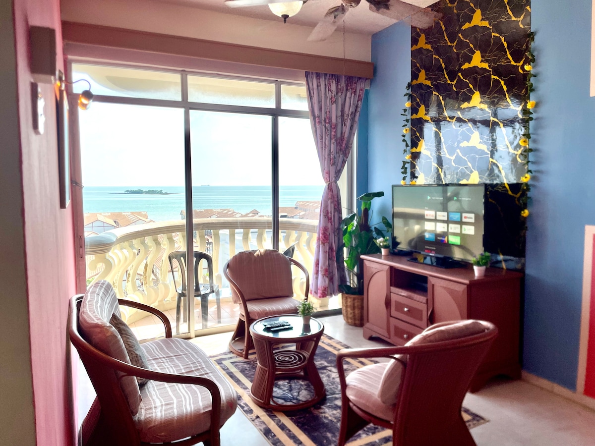 Nuestra elegante unidad recientemente renovada, No More Monday Blue, está idealmente situada en el corazón de Port Dickson, PD Waterfront. No More Monday Blue Suite ofrece un mobiliario elegante y unas impresionantes vistas al mar, manteniendo todas las comodidades de la felicidad en un solo espacio. La ubicación es accesible a través de la autopista norte-sur y está a una hora en coche de Kuala Lumpur. Excelente para los viajeros, ya que podrán despertarse con una taza de café con vistas al mar desde arriba.