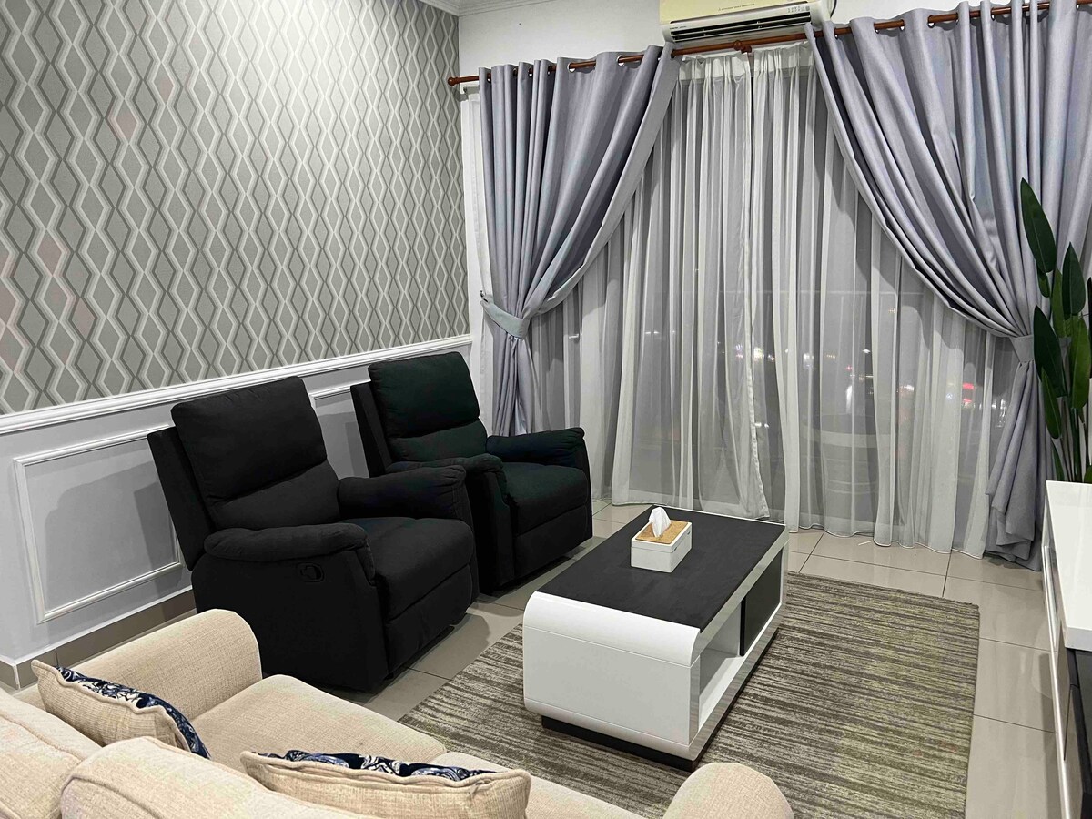 Elegante apartamento en la ciudad con wifi rápido, paquete completo de Astro, Netflix y Disney+. Disfruta de acceso a piscinas, gimnasios y un jardín en la azotea. Ubicado en el centro, cerca del centro comercial AEON, el cine TGV y restaurantes. ¡Experiméntalo tú mismo!