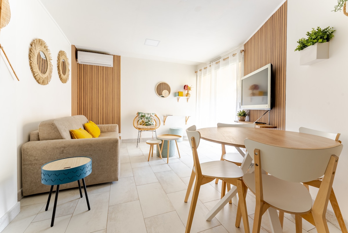 F2 con aire acondicionado, playa a 200 m, terraza grande y piscina
