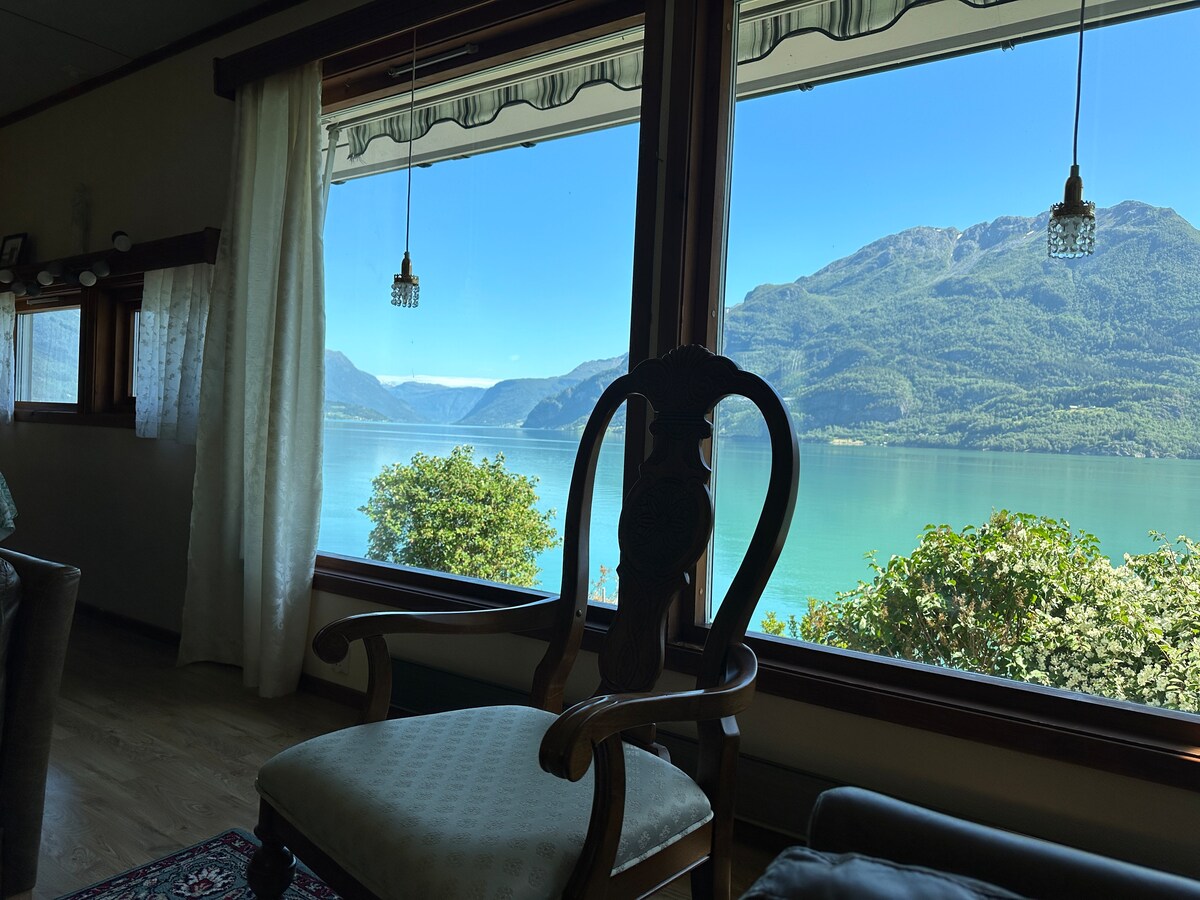 Encantadora y antigua casa con un toque romántico campesino ubicado en el corazón de la idílica Lustrafjorden. La casa tiene todo lo que necesitas para disfrutar de una estancia acogedora y tranquila junto al fiordo, incluida la larga distancia del vecino más cercano, acceso a una bonita zona de baño en la planta baja de la casa, balcón y balcón de invierno de vidrio asociado, jardín grande y floral, varios grupos de asientos al aire libre e interiores, hornos de leña en múltiples espacios de vida y una cocina bien equipada con electrodomésticos.