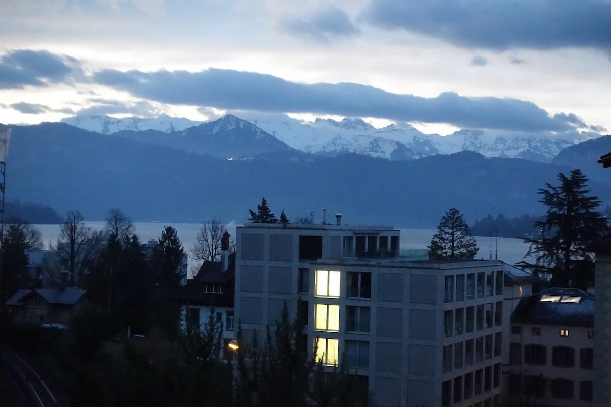 The apartment, located in a quiet neighborhood, offers an ideal combination of relaxation and active holiday. Set away from the hustle and bustle in an area without through traffic, it guarantees peace and relaxation. Despite the tranquil setting, connectivity to the outside world is uninhibited. The apartment, which has been continuously upgraded, provides with its spacious layout and a generous terrace an unparalleled view of Lake Lucerne and the surrounding mountains, which is sure to make every nature lover's heart beat faster. The 4 ½-room apartment is just a few minutes' walk from the lakeside promenade, where a variety of leisure activities are available. Walking paths lead to the Swiss Museum of Transport or into the city center, while close-by, there are opportunities for swimming in the lake, launching small boats, or stand-up paddling. For tennis enthusiasts, there are nearby courts with a public restaurant. Culinary, the area offers everything from Gault Millau awarded restaurants to simple, yet hearty cuisine, all within a 10-minute reach. Furthermore, the proximity to a private hospital, the Swiss Museum of Transport, and the picturesque old town of Lucerne with exquisite shopping opportunities completes the offer. Also, those who are sporty will find plenty to do in Lucerne: A dense network of hiking and cycling paths, as well as the opportunity for fishing and boat tours on Lake Lucerne, offer variety. The mountains of Central Switzerland are easily accessible for nature enthusiasts, making this apartment a perfect starting point for discoveries in and around Lucerne.