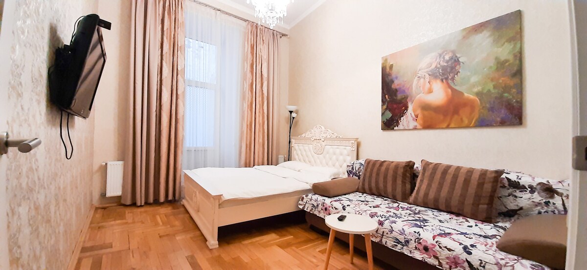 IMPORTANTE: ¡ En nuestra oferta, pagas menos tarifas! Por favor pagar el coste total, no pagas tarifas adicionales, a diferencia de muchos otros. Modernos apartamentos de un dormitorio (habitaciones aisladas), después de una renovación de alta calidad, están equipados y equipados de manera que sus vacaciones o viaje de negocios sea lo más cómodo posible. Situado en el corazón de la parte histórica de Lviv, cerca de la Plaza del Mercado, que le dará la oportunidad de disfrutar plenamente del espíritu de la antigua ciudad.