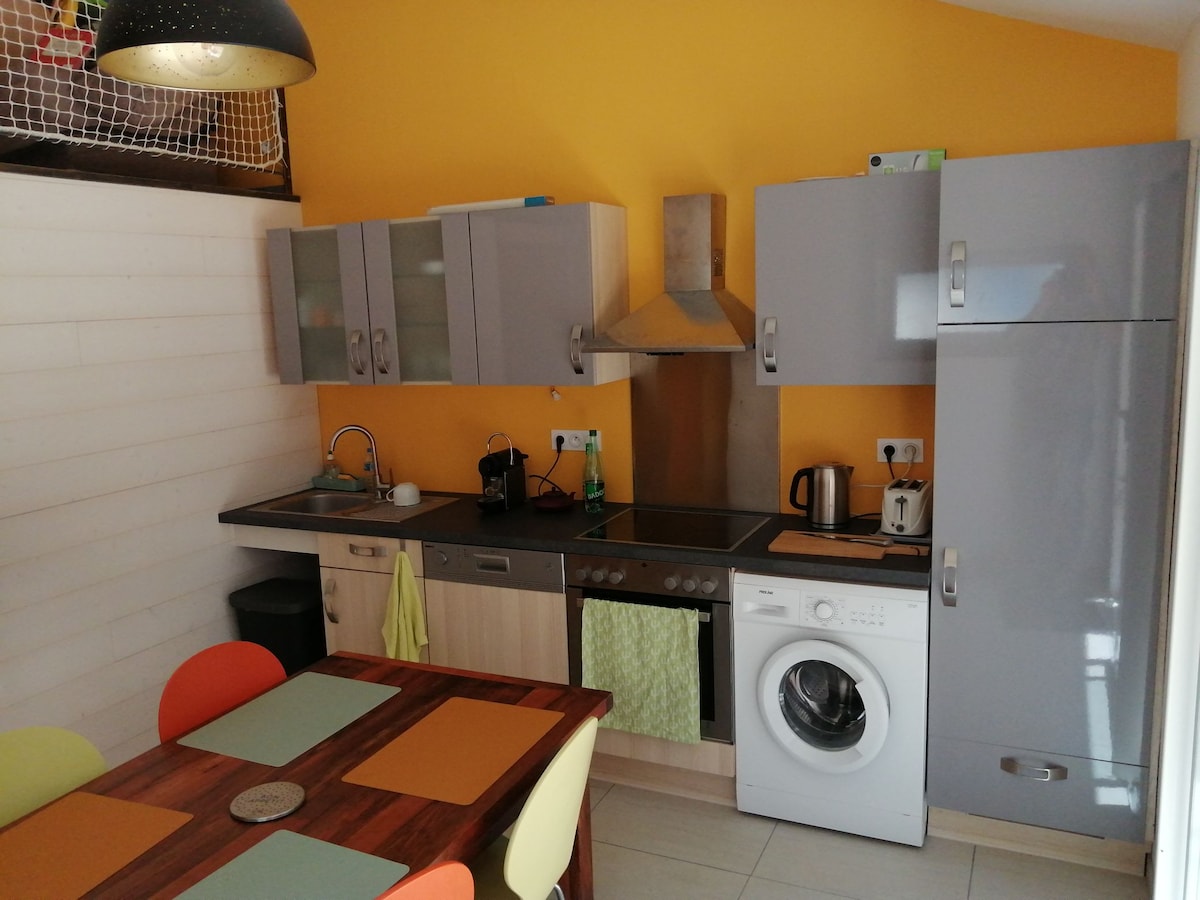 Venga a descubrir nuestro encantador alojamiento, nuevo de 35 m2 y adosado, por nuestro garaje. Esta casa tiene capacidad para 4 adultos y 2 niños. Tiene terraza. Se encuentra en el campo, frente al bosque y al campo. Está a 5 minutos del supermercado. Está a 10 minutos del lago y de la piscina. Se encuentra a 30 minutos de las primeras estaciones de esquí, a 50 minutos de Morzine, Châtel, Avoriaz. Al lado, ciclismo de montaña, senderismo... Suiza, para descubrir, en barco o en coche. ¡Bienvenido a la Alta Saboya!