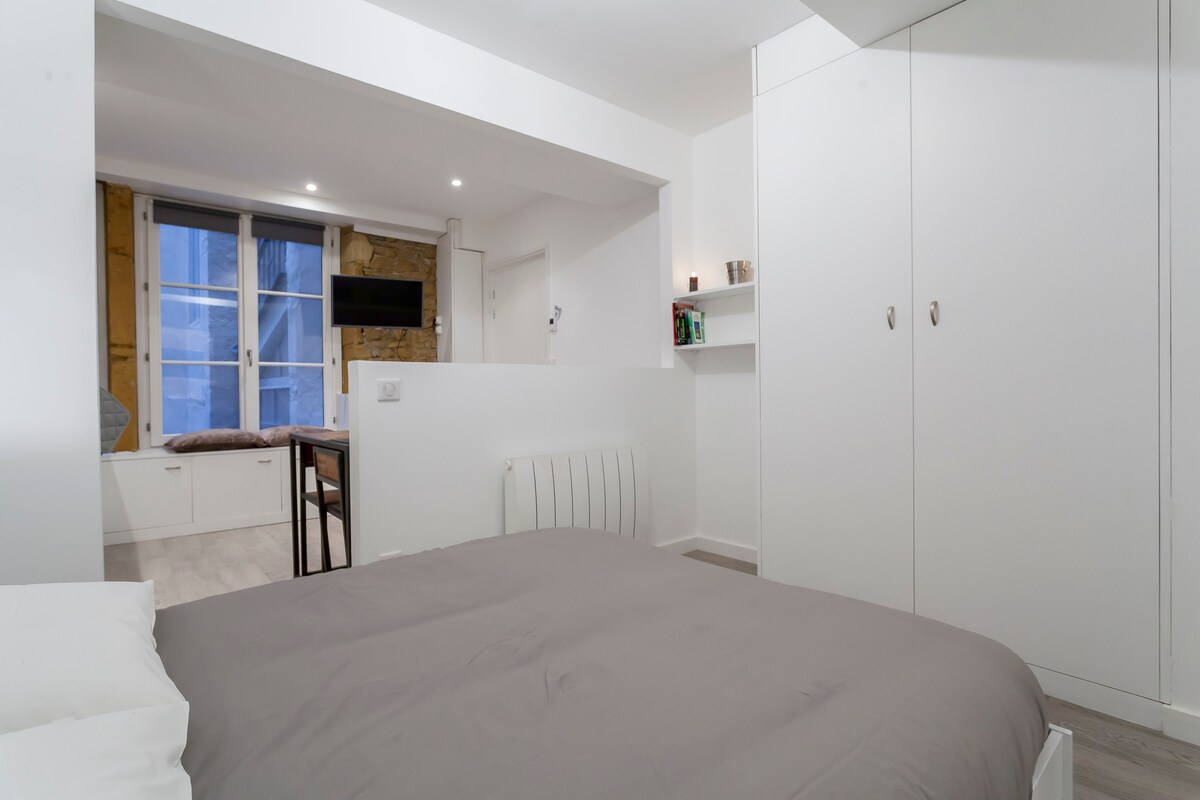 ¡Corazón de Lyon! A 50 metros de la plaza de St Paul . ¡Maravilloso alojamiento completamente renovado! Sois saliendo de las calles peatonales de San Juan. Situado en una zona tranquila en la 3 ª planta de un pequeño edificio . (¡Las escaleras son un poco empinadas y no son adecuadas para personas con movilidad reducida y niños muy pequeños con cochecitos!) Te alojarás en un piso de arquitecto magnífico y totalmente equipado! WIFI GRATUITO ¡Café gratis! APARCAMIENTO GRATUITO con llave (a 60 m)