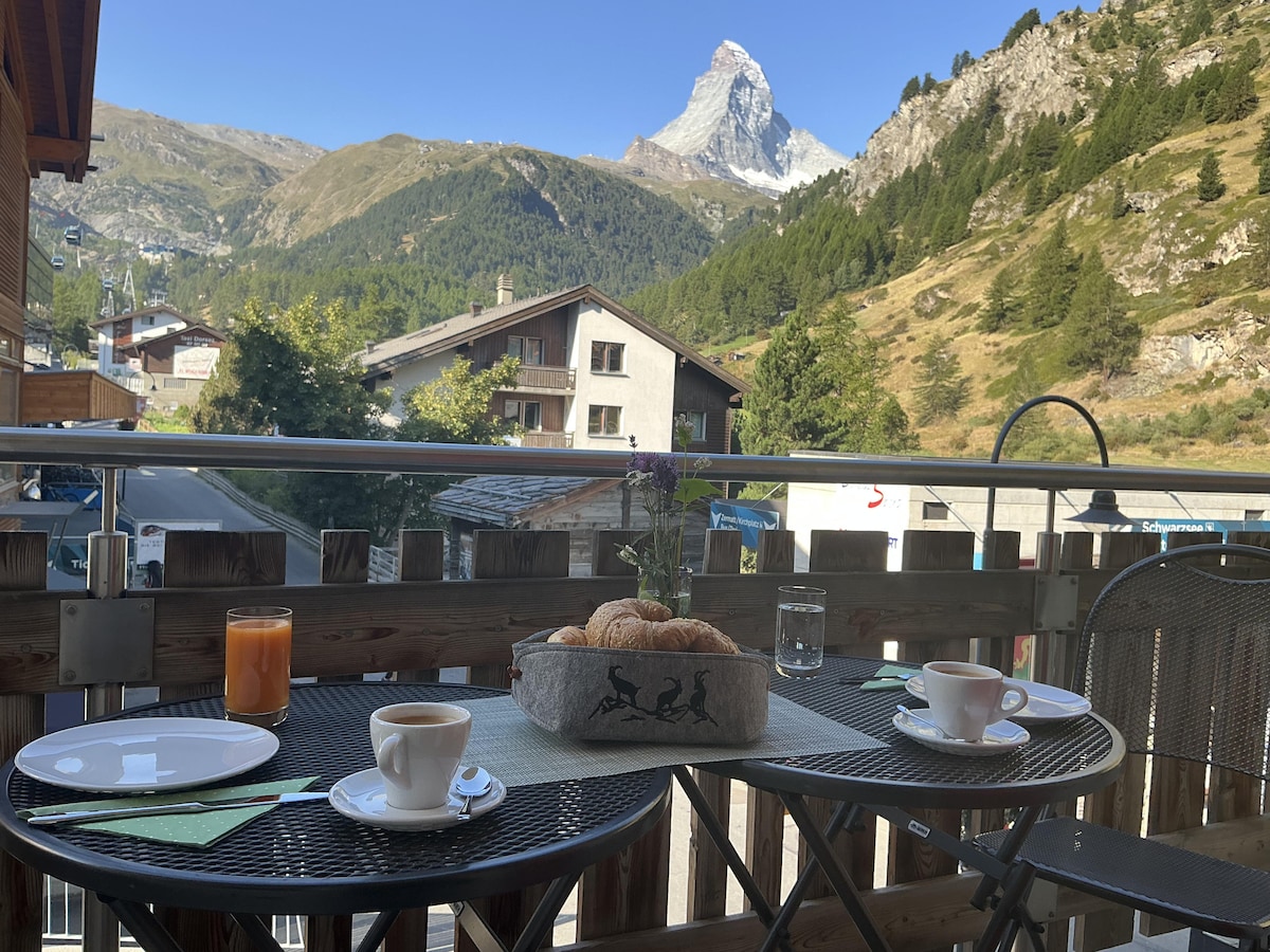 Starten Sie den Tag mit Matterhornblick und frischer Alpenluft: Unser neu und modern renoviertes Apartment in Zermatt liegt direkt an der Talstation des Matterhorn Glacier Express. Genießen Sie zwei Schlafzimmer mit großem Doppelbett, Balkon mit Aussicht, eine moderne Küche mit Spülmaschine, Raclette & Fondue sowie ein stilvolles Bad mit Dusche und WC. Lift im Haus, Bushaltestelle in 2 Min., Zentrum in 10 Min. Perfekt für Paare, Ski- und Wanderfans die keine langen Wege möchten.