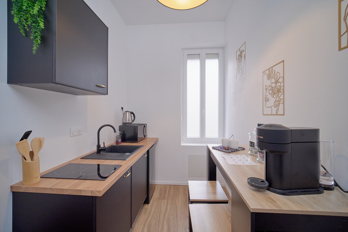 ¡En el Chalet d'Élisagathe te sentirás como en casa! Encontrará lo necesario para una noche o un fin de semana. En un espíritu de nido discreto, cálido y elegante, albornoces y zapatillas de exterior acompañan al jacuzzi puesto a su disposición única para que se relaje. Con su espacio exterior, el chalet es tranquilo, sin vecinos. Cerca del centro de la ciudad, a 10 minutos a pie de la estación de tren con estacionamiento seguro, este alojamiento es ideal para un momento en pareja.