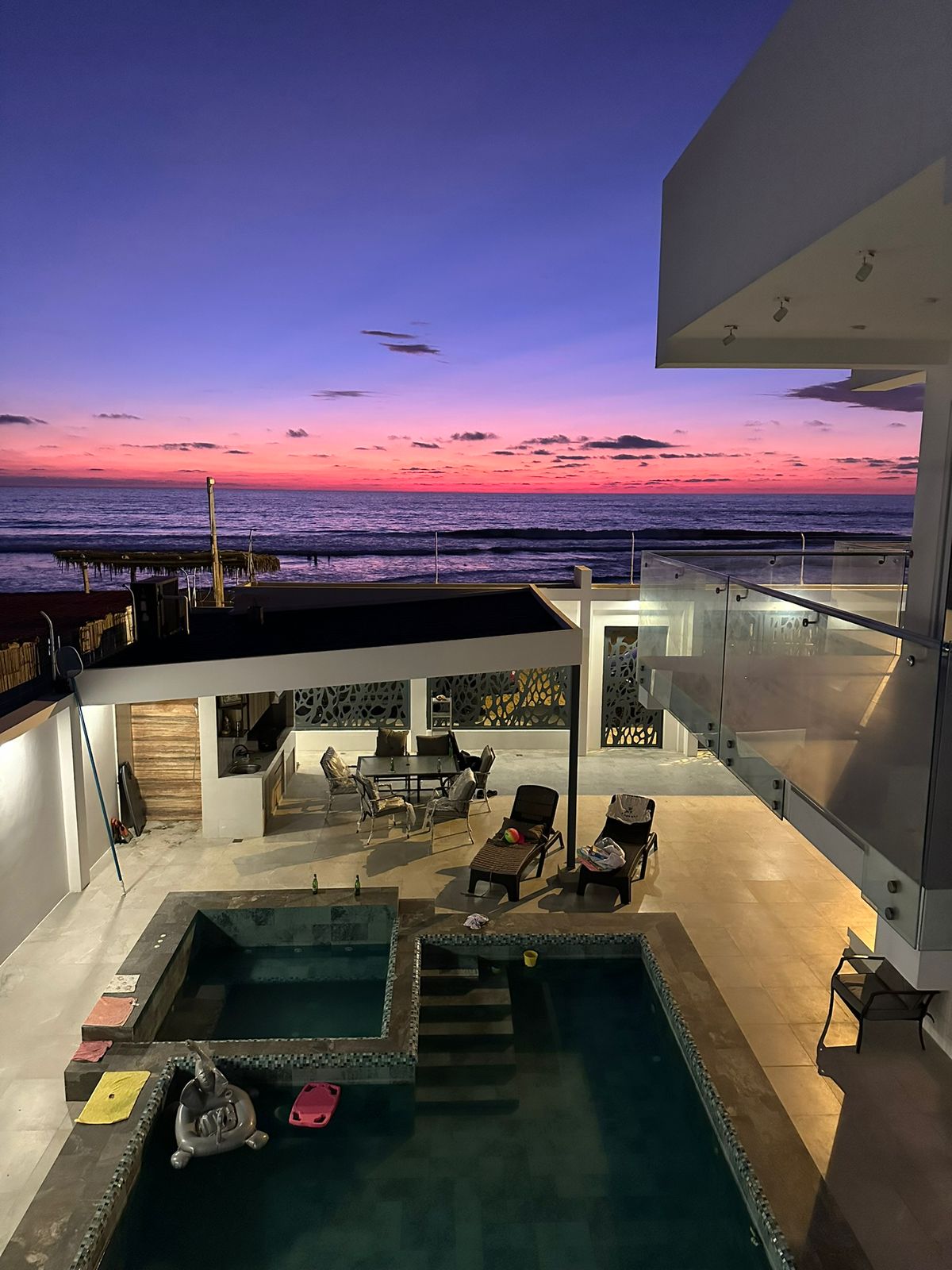 Hermosa villa moderna frente a la playa, en la zona residencial de Ayampe, disfruta de una experiencia de retiro en este lugar especial y único con las mejores vistas y ubicación. Ayampe es muy conocida por su ambiente tranquilo y pacífico, su increíble naturaleza, su alimentación saludable, el surf y la práctica del yoga es solo una parte de su encanto. Este lugar está diseñado para disfrutar de la increíble playa de Ayampe que está a solo unos pasos de la villa, la mejor parte es la increíble vista al mar/puesta de sol desde la comodidad de tu dormitorio.