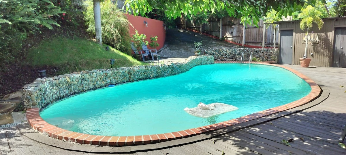 Relájate y desconecta en este alojamiento único y relajante. Esta hermosa casa de campo privada para parejas ubicada en el pueblo de Adjuntas tiene una impresionante piscina natural, una cascada privada, techos verdes, una relajante bañera de agua caliente (calentada con leña) y acceso exclusivo al río Tanama. ¡Con más de una milla de senderos para despejar tu mente, promete ser excelente para practicar senderismo, natación, exploración y disfrute de la naturaleza!