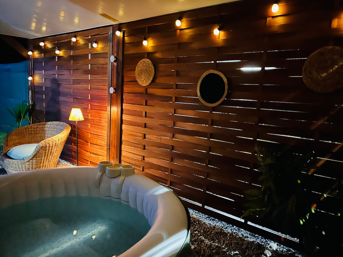 Suite entièrement privatisée avec en extérieur son jacuzzi privatif 🫧 Le cadre parfait pour une escapade romantique ou un séjour d’affaires en solo ou duo. Options en supplément : massages ⚜️ 🔑 Arrivée autonome avec boîte à clés sécurisée 🚫 les animaux, les fêtes et mineurs ne sont pas autorisés Pour tout renseignement n’hesitez pas à nous écrire 📩