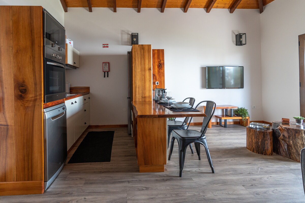 Rodeada de bosques y situada en lo alto de las montañas, Camélia es la opción ideal para los amantes de la naturaleza que buscan paz y momentos únicos en la comodidad de una casa de campo bien equipada. Su ubicación privilegiada dentro del parque natural de Ribeiro Frio, permite el acceso a muchas «Veredas» y «Levadas», y revela de cerca la belleza del bosque de Laurissilva. ¡Ven y disfruta de una estancia única y romántica en este paraíso atlántico!