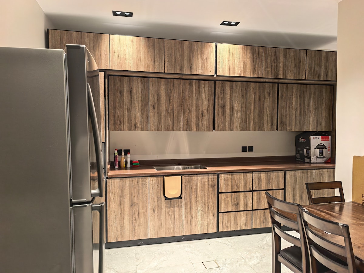 Disfruta de toda la familia en este elegante lugar. Apartamento de lujo moderno * Diseñado y preparado para encontrar tu comodidad * Dos habitaciones ( principal /habitación 3 camas) y un amplio salón abierto a la cocina moderna Diseño elegante (pantalla Samsung Smart WiFi) Cocina totalmente equipada. - Refrigerador. - Horno + microondas + lavadora - Todos los suministros de cocina están completos. - Estufa (a gas / electricidad) Además de la ubicación destacada A 8 minutos en coche de la estación de tren. A 10 minutos en auto del aeropuerto. A 5 minutos en auto de la mezquita de Quba. A 15 minutos en auto de la mezquita del Profeta.
