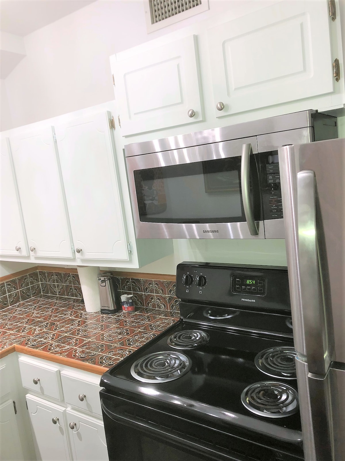El apartamento está abajo. Hay aparcamiento en la propiedad, también aparcamiento en la calle si es necesario. La unidad está en la parte trasera, apto. C. Hay una caja de registro automático en la puerta de entrada, abre y retira la llave. (Tienes que volver a marcar los números del código para cerrar la puerta de la caja de seguridad).