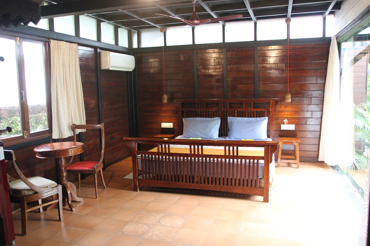 Dale View - A beautiful and serene 2 bedroom A/C bungalow set amongst nature with a 180 degree panoramic view of hills and the Kundalika River in the foreground. A beautiful get away for you and your family. Food can be ordered at home from the nearby Resort or get home cooked food prepared by a Cook who supplies food in our Complex. The Bungalow is on a hill with breathtaking view. Enjoy the serenity of the place during your visit and destress!!. The house has 3 washrooms and all amenities!!