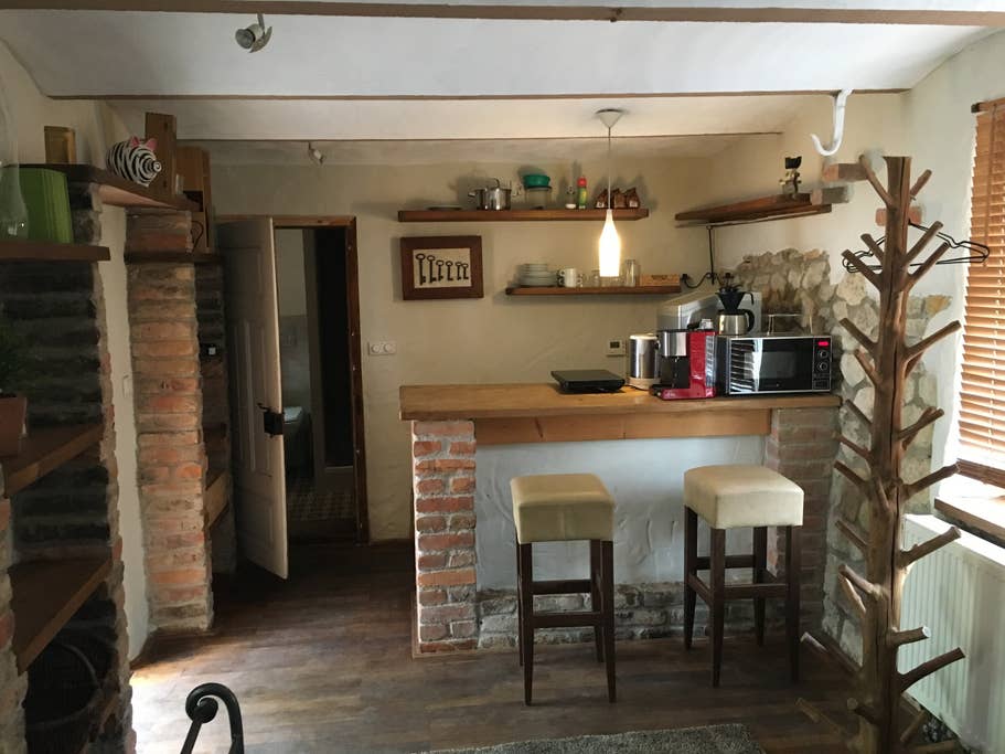 En el centro del pueblo vinícola de Bechtheim (pop. 1800), en una carretera residencial sin apenas tráfico, tienes la casa renovada de los trabajadores agrícolas de una antigua bodega solo para ustedes. La cocina es nuestro pequeño museo, pero también se puede utilizar. En la segunda planta hay dos dormitorios (uno con cama de matrimonio, otro con dos camas individuales) y un baño. ¡No tenemos televisión! Pero tenemos un hermoso jardín, accesible a 10 metros a través del patio (uso compartido hasta las 22:00).