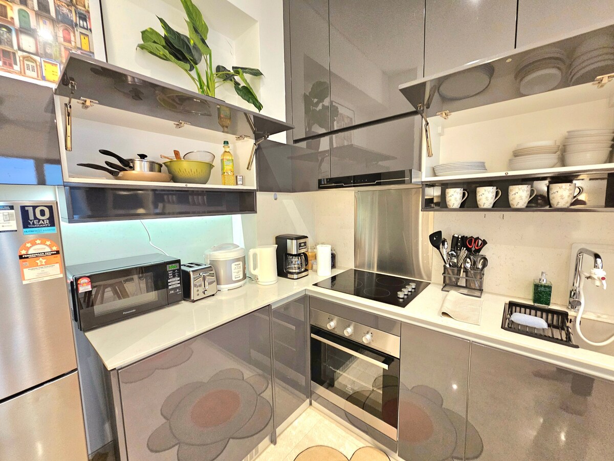 📍Pertama Residency Welcome to my New Bnb - Moonrise City! Este estudio está recién preparado con mucho amor, combina la decoración contemporánea con comodidades modernas y una experiencia, todos pueden disfrutar especialmente del momento del jacuzzi con tu amor y pantalla de proyector de 120pulgadas con Netflix. Este lugar único tiene un estilo propio, ofrece un ambiente acogedor, limpio, tranquilo y refrescante para parejas. ¡Ven y experimenta en el nuevo bnb! Nos vemos.