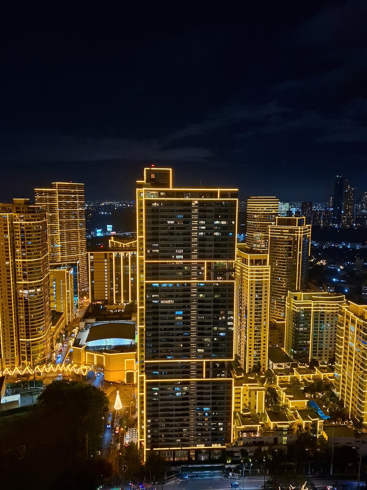 Your Private Sanctuary (20% off 7+ nights) includes: Ogawa full-body massage chair De'Longhi coffee bar + Marshall speakers Tempur Queen bed · Goose down pillows Crate & Barrel furnishings · 78 SQM Wraparound balcony · Rockwell skyline views Private outdoor dining set above the city Full blackout smart curtains Fully stocked kitchen · Complete toiletries 50" Samsung TV · Netflix · High-speed WiFi All included – Rooftop pool · Gym · Private parking Smart lock self check-in anytime 24/7 security